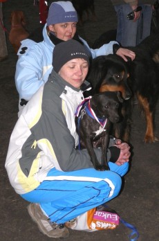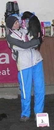 Byla jsem zvědavá jak to Kelly zvládne. Téměř dva měsíce jsme netrénovaly a těch pár tréninků na sněhu bylo bez zónovek. Ale nakonec jsem byla opravdu spokojená. Jump jsem sice zkazila hned na začátku - holt to odložení stále není dobré a já nervózní, že mi uteče, jsem ji nakonec vytlačila úplně jinam, než jsem chtěla.Takže DIS. Nevadí - zbytek parkuru zvládla na jedničku. Zkoušku jsme zvládly s jedním odmítnutím v nejlepším čase kategorie SA1. Po doběhu mi bylo samozřejmě jasné, že jsem ten tunel měla jít z druhé strany. Nakonec z toho bylo třetí místo. A open opět DIS. Byla tak rozeběhnutá, že mě ani nenapadlo, že by se v té rychlosti mohla stáhnout a vlítnout do druhé díry. No pro příště musím vydržet o pár setinek déle. A z čeho jsem měla radost ? Ze tří slalomů dva na 100%. Na kladině dvakrát pěkně zastavená zóna. Áčko jenom na 50% - jednu zónu skočila. Na tom musíme zapracovat !